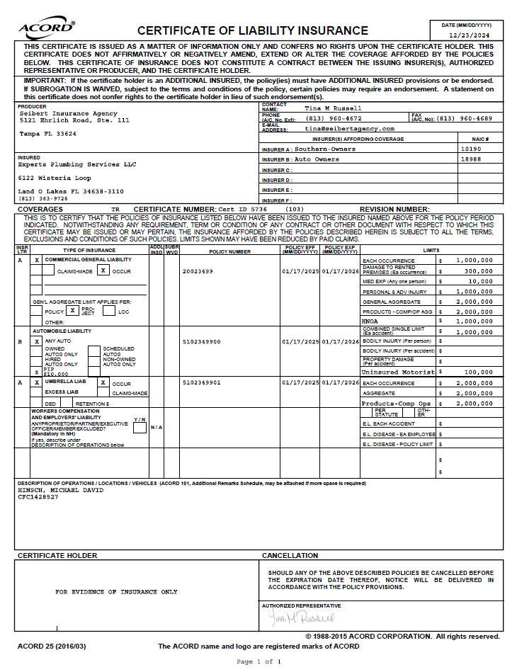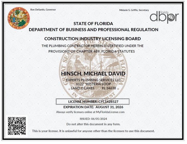 Please Read More About Experts Plumbing Services LLC and Our Owner Below
